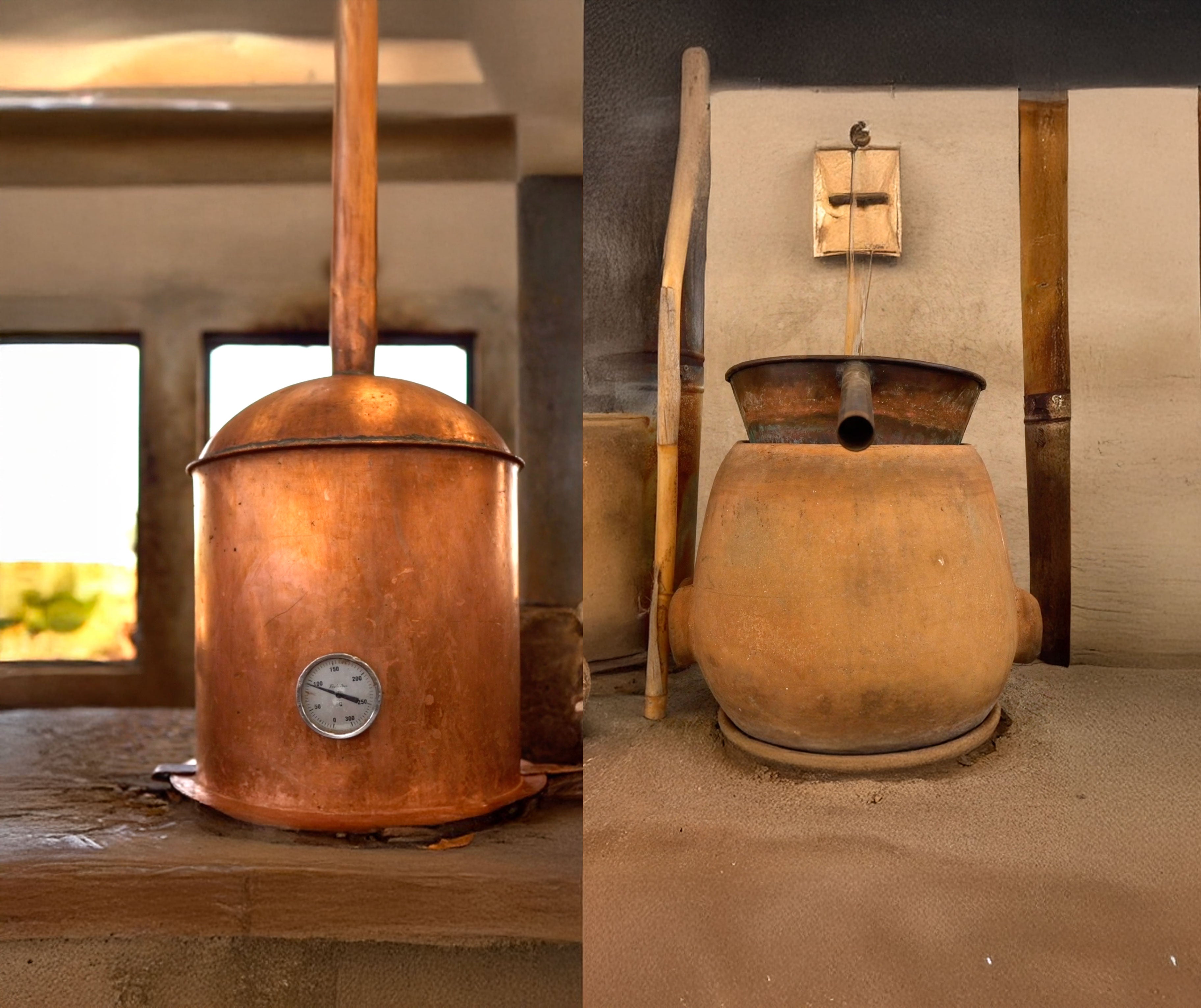 Both play a crucial role in defining our mezcals and each method brings different nuances to the Mezcal, mainly distinguishable by their respective distillation materials.