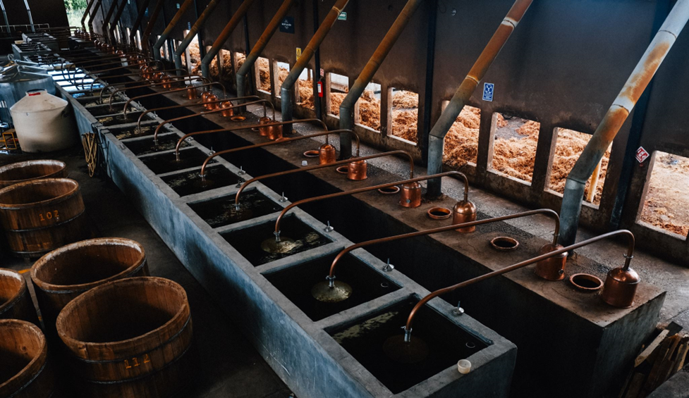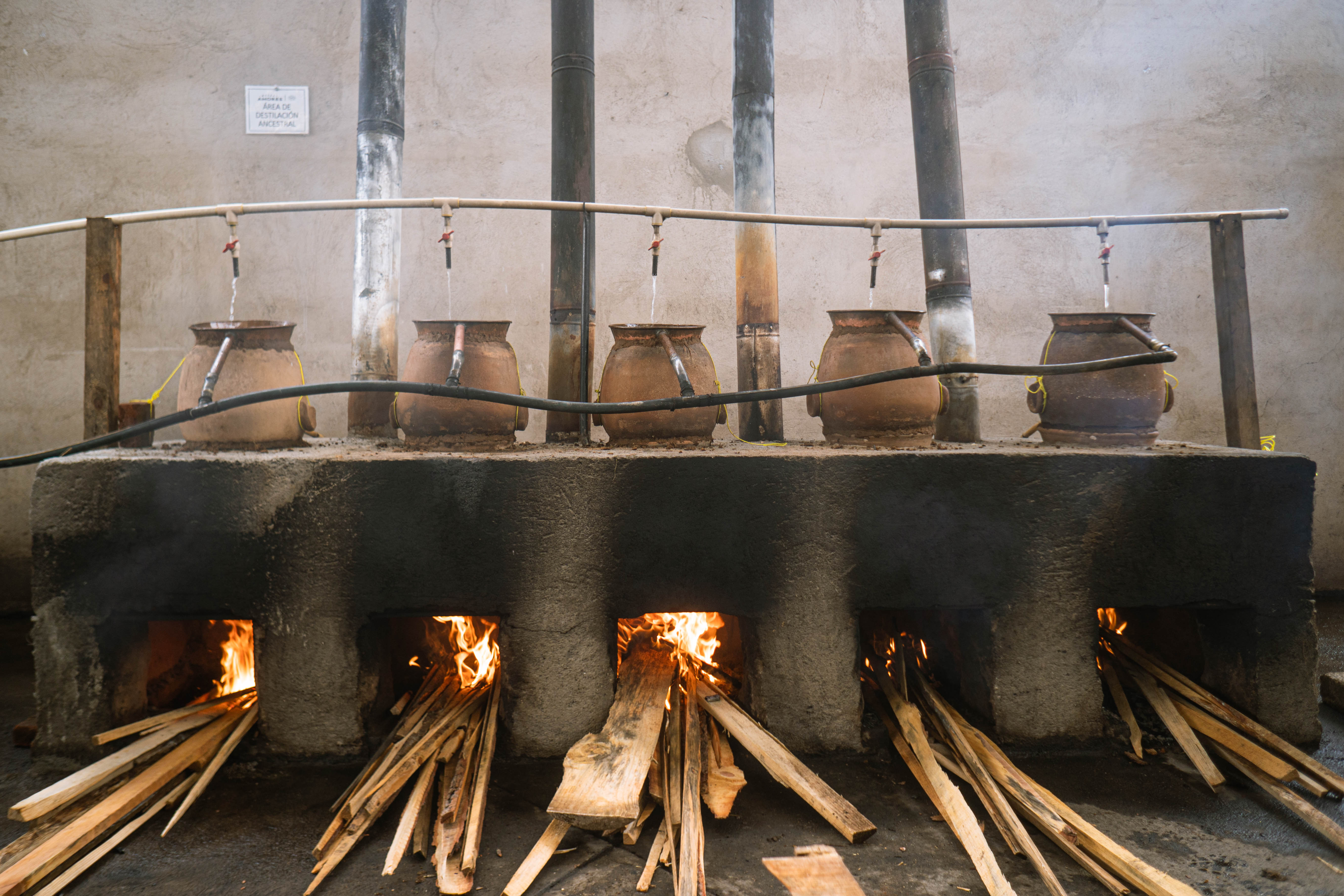 Distillation occurs in copper stills, giving the mezcal a rustic and authentic touch.