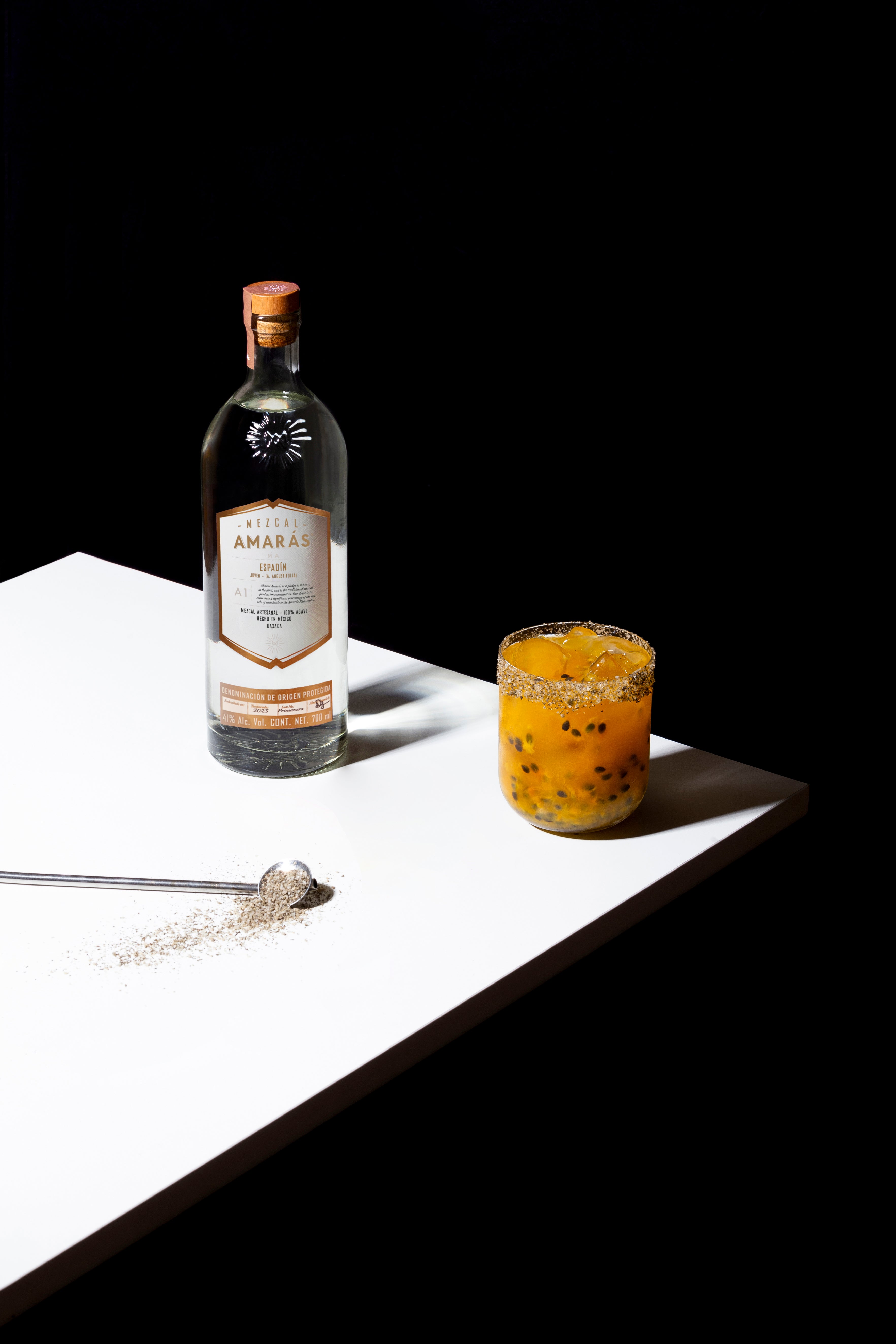 Refresh your palate with this vibrant blend of passion fruit and the unmistakable flavor of Mezcal Amarás Espadín Joven. A perfect combination of tropical and smoky notes, ideal for enjoying under the sun or on any special occasion.