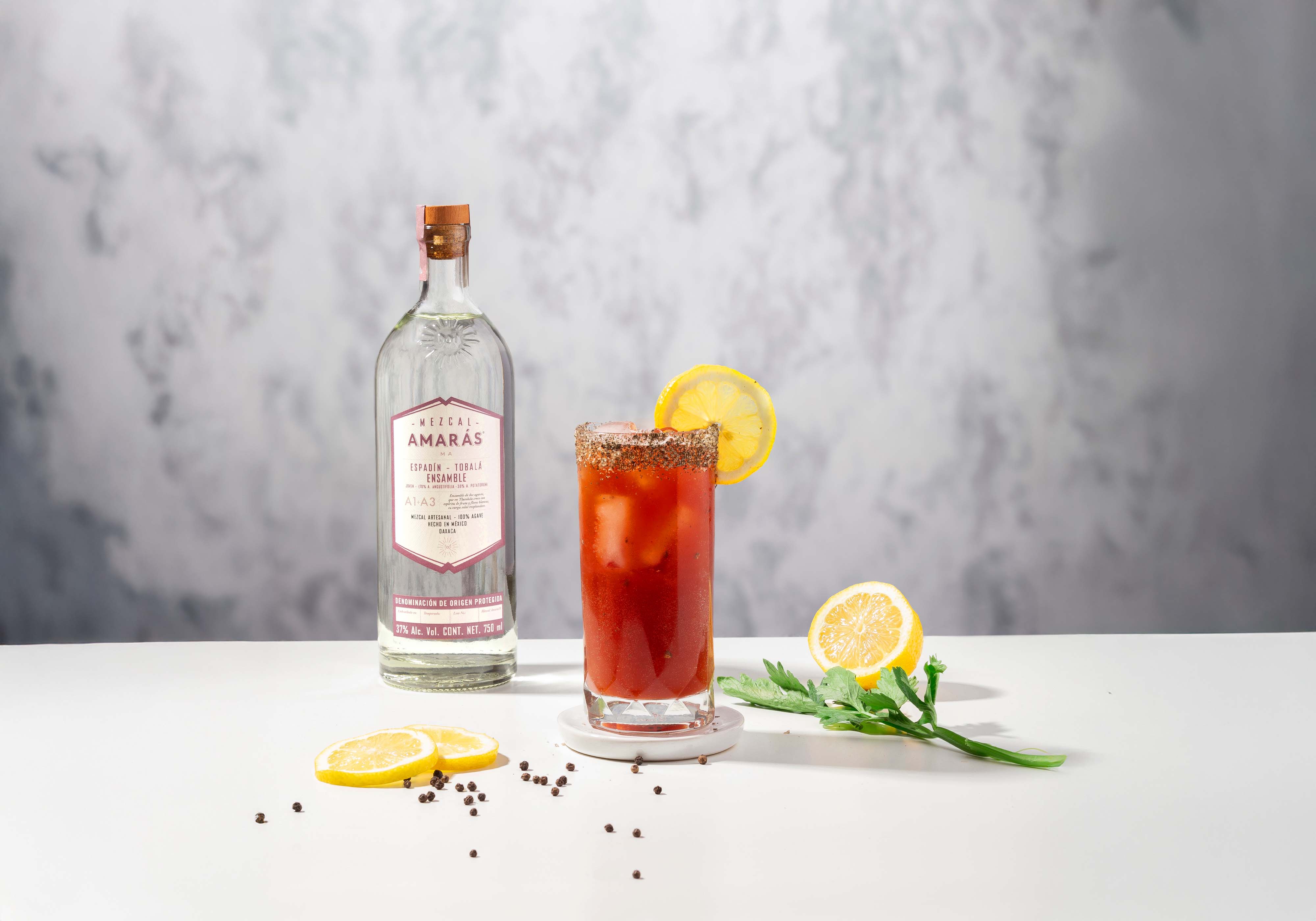 02.Vierte Mezcal Amarás Espadín-Tobalá Ensamble, bloody mix*, jugo de limón, pimienta negra, sal y jugo de tomate.