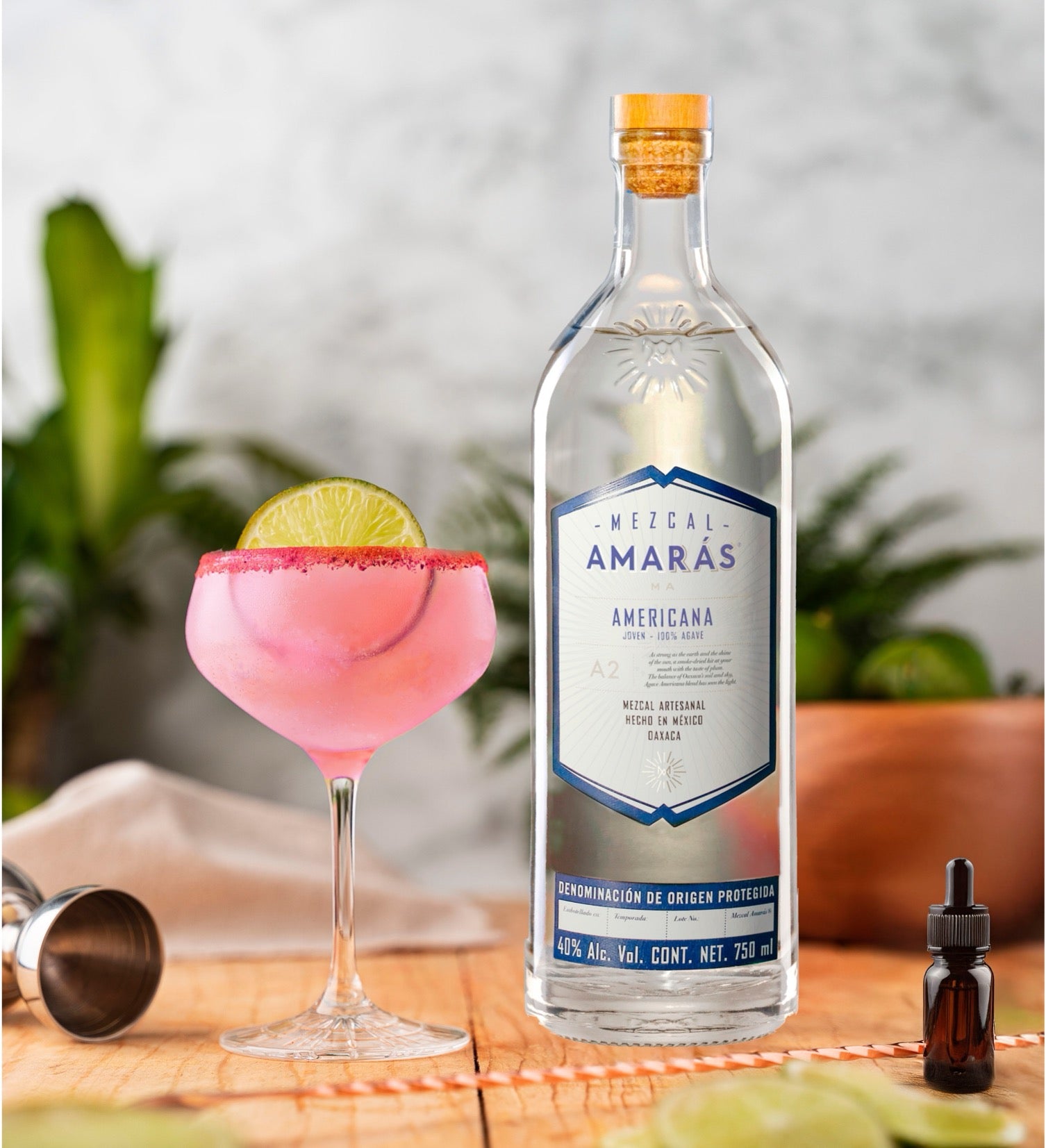 01.Llena una coctelera con hielo, vierte Mezcal Amarás Americana, vermut dulce, jugo de toronja, jugo de limón y jarabe simple. Agita bien y sirve. Finaliza con 3 gotas de CBD con brillantina.